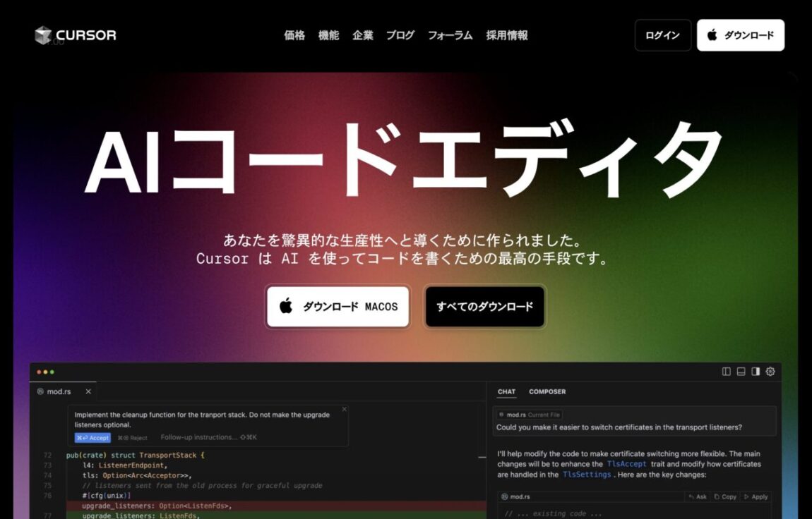 AIファーストのコードエディタとして注目を集めるCursorは、GPT-4をベースにしたAIとの会話形式で開発を進められる点が画期的です。