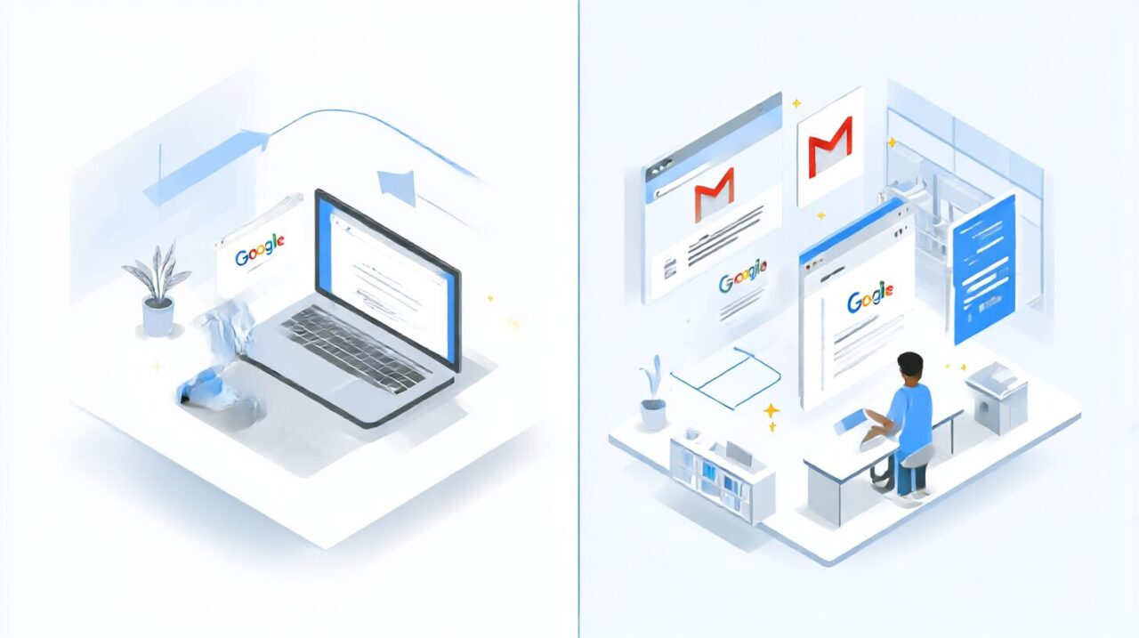 Geminiには個人向け(Google AI Gemini)と業務向け(Workspace Gemini)の2契約がある。違いは統合機能とDeep Research回数だけで、Workspace StandardはGmail/Docs/Sheets統合により作業効率を大幅に高める。料金はGoogle AI Proが¥2,900/月、Workspace Standardが¥1,600/月。Deep Researchを多用するかどうかで選択を。