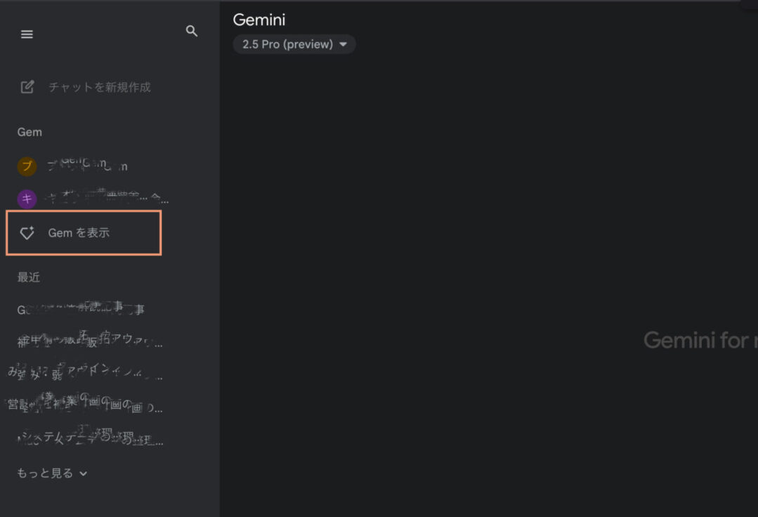 パソコンならサイドバーに「Gemを表示」とかスマホなら左上のボタンを押すと「Gem」みたいなメニューやボタンがあるはずだ。