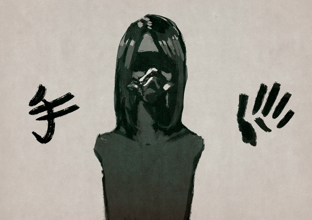 今更ですが、今回は顔以外で表情(内面)を出したいと思ったので、目を隠しました。口も棒にしました。