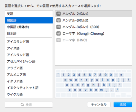 このように入力できる言語を設定できる画面が表示されるはずだ。