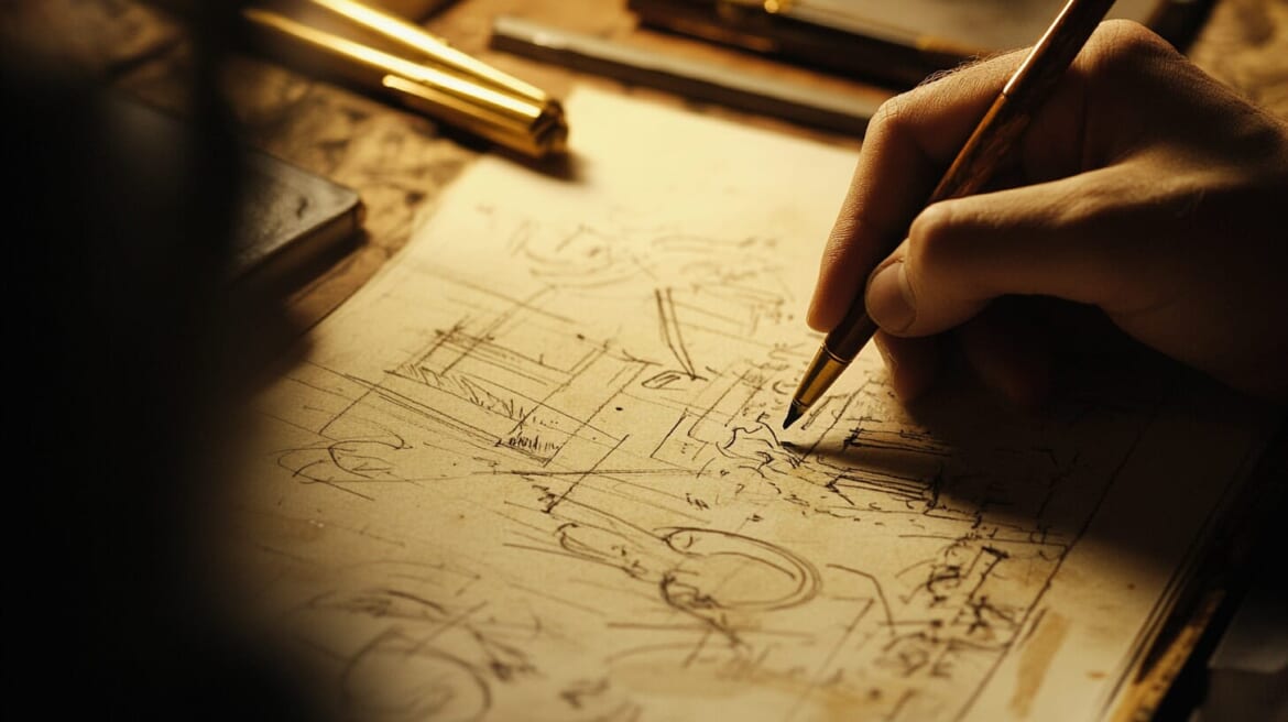 ダ・ヴィンチは、芸術的な創造力と科学的な論理思考を併せ持っていました。彼の手帳には、精密な機械の設計図と、美しいスケッチが同居しています。