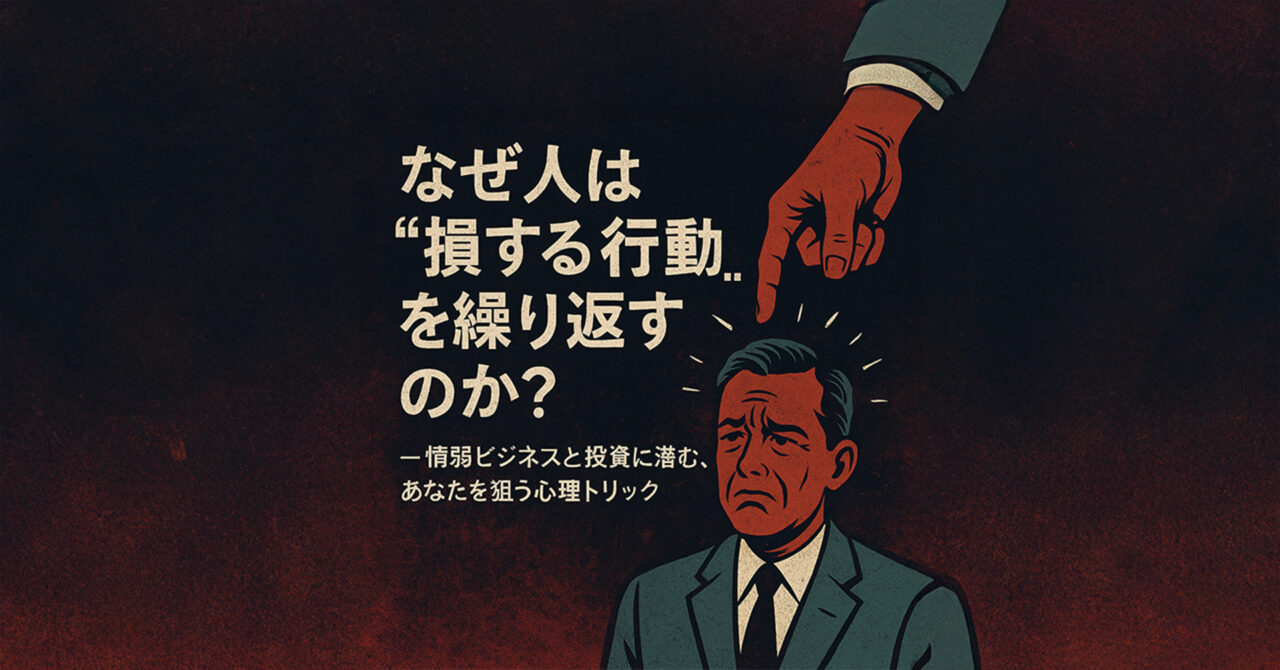 市場は感情で動く人間心理の縮図で、投資も起業も“損する行動”を繰り返す情弱ビジネスの罠を見抜くには、言葉の裏と実績を検証し自分の状況でリスクを取りつつ自分で選ぶ力を磨くことが不可欠。