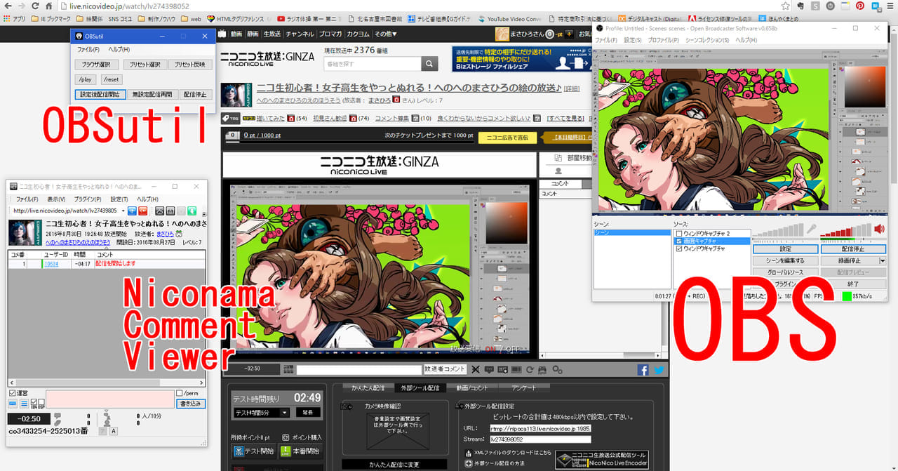 自分の場合は、PCで絵を描いているので、その画面を生放送にのせて配信させるソフトが必要でした!