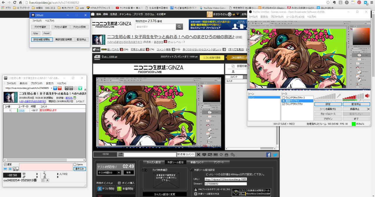 実はニコ生をライブで見たことがなく、動画として投稿されていたものしか見たことがなかったので、全く勝手がわからないまま絵描き仲間に教えてもらった無料ソフトを用意して、スタートしました。しかし、スタート早々に問題が発生いたしました!