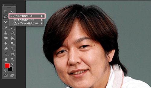 ②シワを消す場所を”なげなわツール”でおおまかに選択する