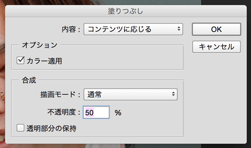 もっと薄くしたい人は③の時に不透明度を上げてください。