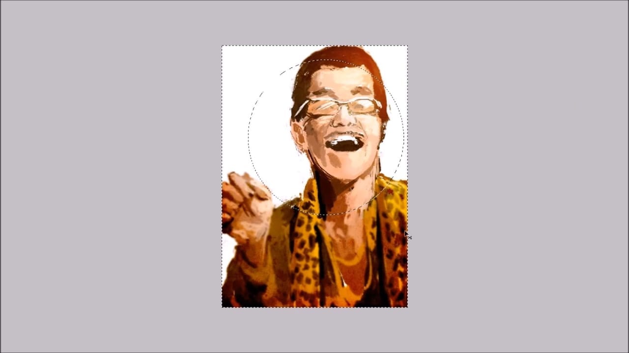 顔のあたりに焦点を当てたいと思ったので、円の選択範囲を取ってから、その選択範囲を調整しています。