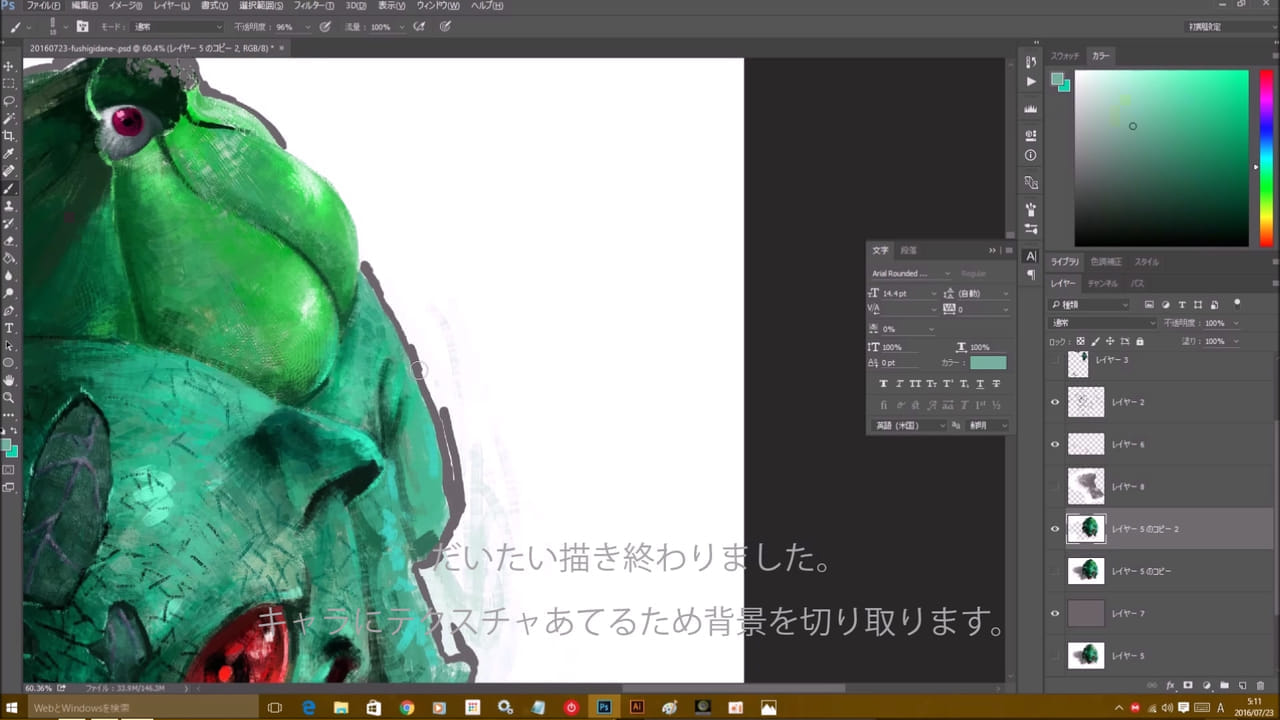 だいたい描き終わりました。 キャラにテクスチャあてるため背景を切り取ります。
