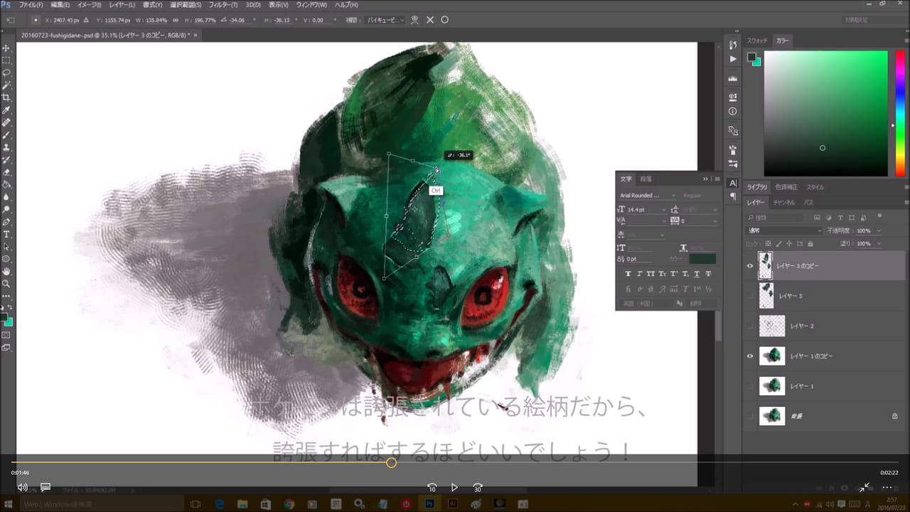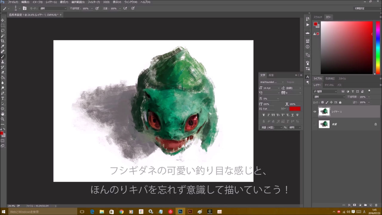 なので今回は、「厚塗り」という自分が普段好んで描いている絵柄の描き方でPokemon Goのフシギダネを描いて動画にいたしましたので良かったら見ていただきたいです♪ 厚塗り描き慣れているので1回で完成です♪ これを見て練習して、みんなも少しリアルでレアなフシギダネを描けるようにして友達に自慢しよう!!