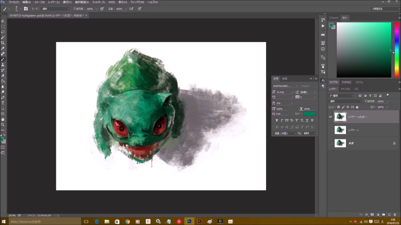ハイライトを入れてから、最後に色合いを調整! これで自分のかわいいフシギダネの完成です♪