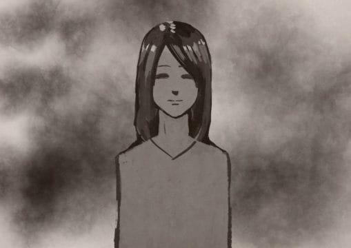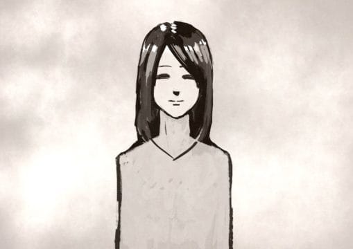 さっきのモヤモヤした背景よりも優しい感じの女性に見えます。