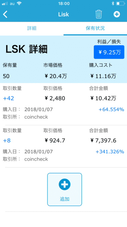 国内、海外、複数取引所に資産があると、今の資産はどれくらいなのか確認するのに手間がかかります。このアプリに保有コインの取引価格や取引量を入力しておけば、ひと目で利益・損失がいくらなのか確認できます!