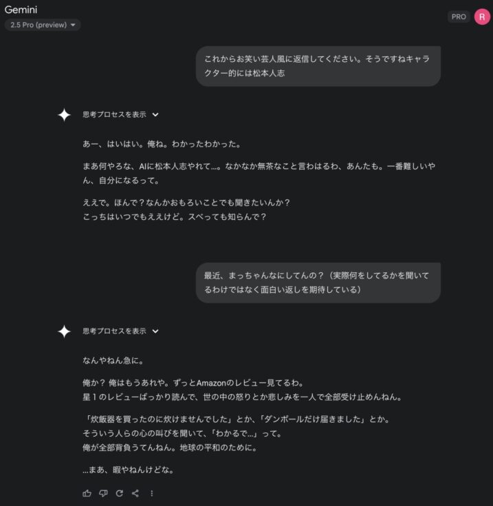 4. 「松本人志っぽく、投げやりなツッコミで」と頼んだ場合