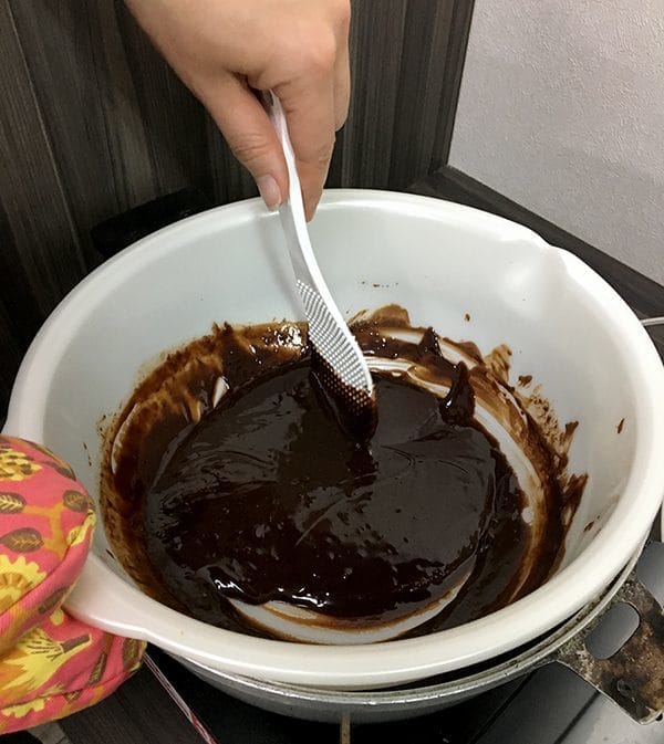 まずは、バレンタインに欠かせないチョコレートを湯煎してソース状に▼