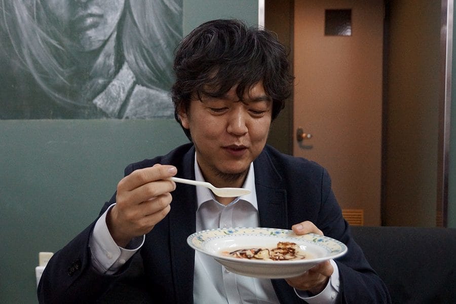 鶴田社長:「うん、チョコ味のやきそば」